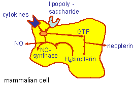 Pteridine biosynthesis and NO formation in mammalian cells, see text below for more information.