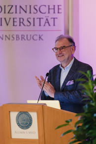 In seinen Grußworten dankte Brezinka den Mitgliedern für ihre Treue und dem ALUMN-I-MED Hauptsponsor der ersten Stunde, der Hypo Tirol Bank, für die jahrelange Unterstützung. Auch seinen drei Vorgängern im Amt des Präsidenten, Raimund Margreiter, Thomas Luger und Gründungsrektor Hans Grunicke sprach Brezinka seinen persönlichen Dank aus. Rektor Wolfgang Fleischhacker, der mit seiner Amtsübernahme am 1. Oktober 2017 auch Mitglied im ALUMN-I-MED Vorstand geworden ist, gratulierte anschließend der Absolvent:innenorganisation zu ihrem Engagement in den vergangenen Jahren.