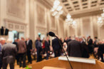 Rektor W. Wolfgang Fleischhacker und ALUMN-I-MED Präsident Christoph Brezinka luden gemeinsam zum traditionellen Neujahrsempfang. Rund 200 Ehrengäste, Mitarbeiter:innen, Absolvent:innen, Studierende sowie Förder:innen nahmen in der Aula der Universität Platz und nutzten die Gelegenheit zum gegenseitigen Austausch.