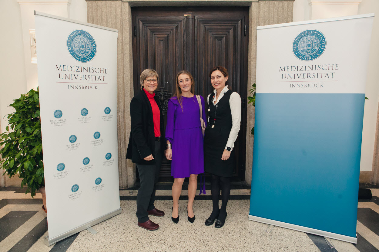 Auch Innsbrucks Vizebürgermeister Franz Xaver Gruber und Christian J. Wiedermann, Geschäftsführer der Tirol Kliniken, drückten in ihren Grußworten ihre Verbundenheit zur Medizinischen Universität Innsbruck aus. Ehrende Worte für Jubilare und Mitarbeiter:innen, die im vergangenen Jahr in den Ruhestand traten, fand Vizerektorin Christine Bandtlow.