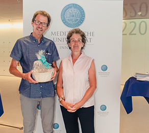 Unmittelbar vor dem diesjährigen Sommerfest, das am 28. Juni 2019 im CCB stattfand, verabschiedete Vizerektorin Univ.-Prof.in Dr.in Christine Bandtlow in Dankbarkeit und Anerkennung für ihre Leistungen Univ.-Prof. Mag. Dr. Nikolaus Romani und Rita Holzknecht in den „(Un-)“Ruhestand.