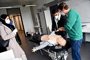 Das Angebot des Skills Labs und der ÖH der Medizinischen Universität Innsbruck ergänzen sich dabei. So ist etwa der ÖH-Kurs „Notfall4you“ eine ideale Vorbereitung für das weiter führende Wahlfach SIM Man im Skills Lab. Der „SIM Man“ ist ein High-Tech-Simulationsmodell für Studierende, mit dem unterschiedliche Notfallszenarien realistisch abgearbeitet werden können.