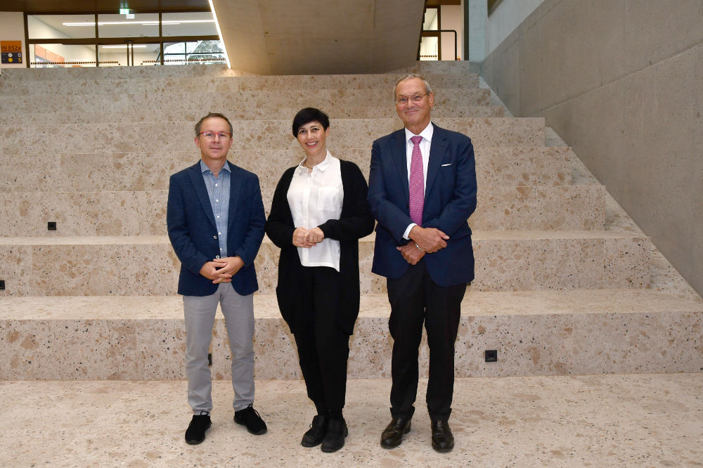 Im neuesten Hörsaal Tirols, dem Audimax des kürzlich errichteten Gebäudes der Leopold-Franzens-Universität Innsbruck, dem Ágnes Heller Haus, fand der diesjährige Empfang der Tiroler Hochschulen zum Semesterbeginn 2023/24 statt. Über 150 Teilnehmer:innen hatten sich angemeldet und verfolgten eine spannende Podiumsdiskussion zum Thema Wissenschaftsvermittlung. Auf der Bühne diskutierten Rudolf Anschober, Bundesminister a.D., Cornelia Lass-Flörl, Direktorin des Instituts für Hygiene und Medizinische Mikrobiologie, Elke Ziegler, Wissenschaftsjournalistin ORF, und Sophia Quirchmair, Landesschulsprecherin 2022/2023. Wolfgang Fleischhacker, Rektor der Medizinischen Universität Innsbruck, übernahm die Moderation. Veronika Sexl, Rektorin der Leopold-Franzens-Universität Innsbruck, nutzte die Gelegenheit, das neue Gebäude vorzustellen. Nach dem offiziellen Programm hatten die zahlreichen Besucher:innen beim „Get together“ Gelegenheit, sich auszutauschen.