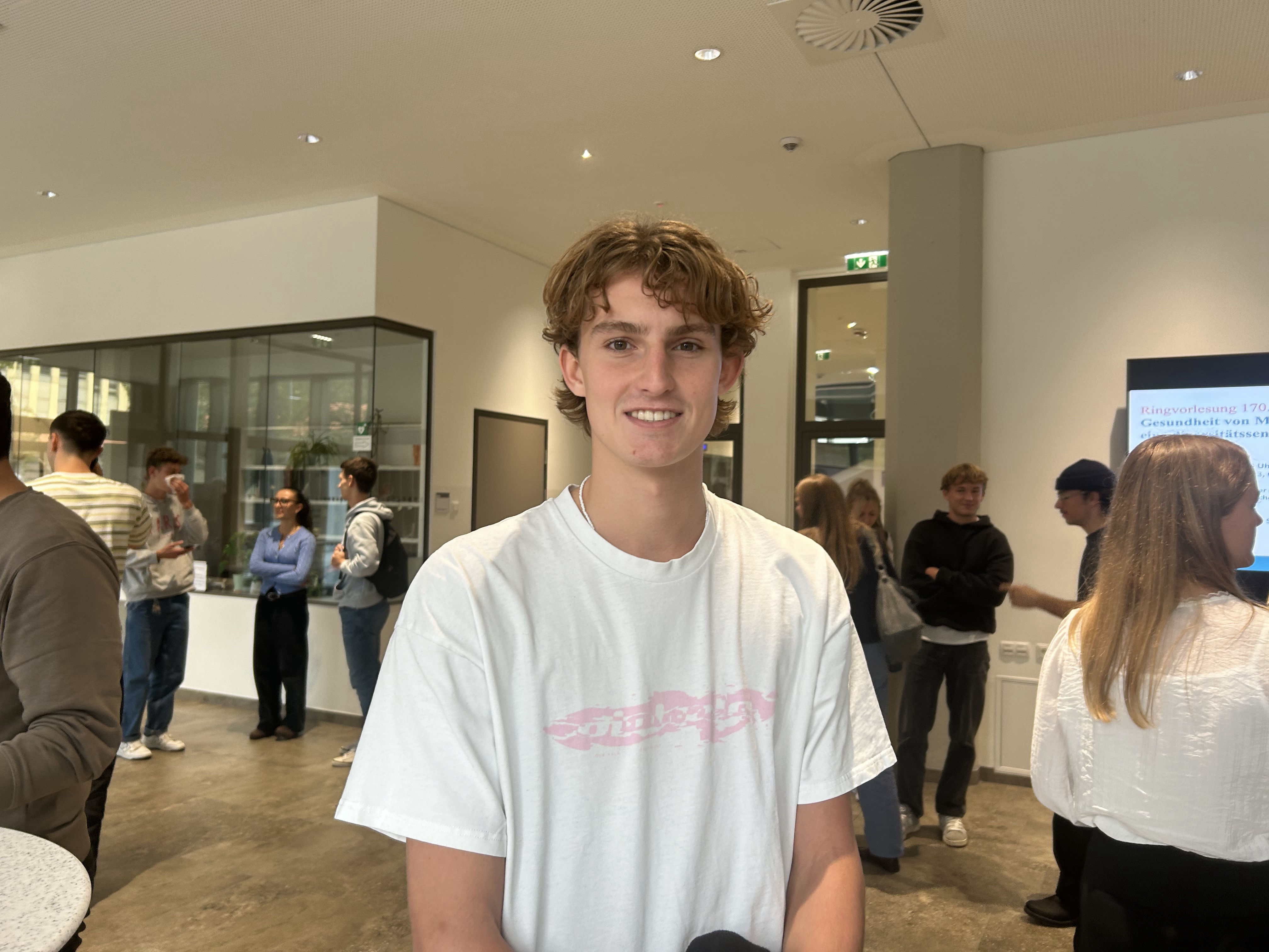 Nach so viel geballter Information ist die Pause eine willkommene Gelegenheit zum Durchschnaufen. „Das war jetzt wirklich ein dichtes Programm, es gab viele Infos. Aber ich bin froh, dass ich alle wichtigen Ansprechpersonen für das Studium gesehen habe und weiß, an wen ich mich wenden kann“, sagt Jonas Fäßler, Student der Zahnmedizin. „Wir haben schon gestern mit einem Praktikum im Zahnschnitzen angefangen“, erzählt der 23-jährige Dornbirner, der eine Lehre in der Metallverarbeitung absolviert hat und sich vor allem auf die praktischen Aspekte im Zahnmedizinstudium freut.