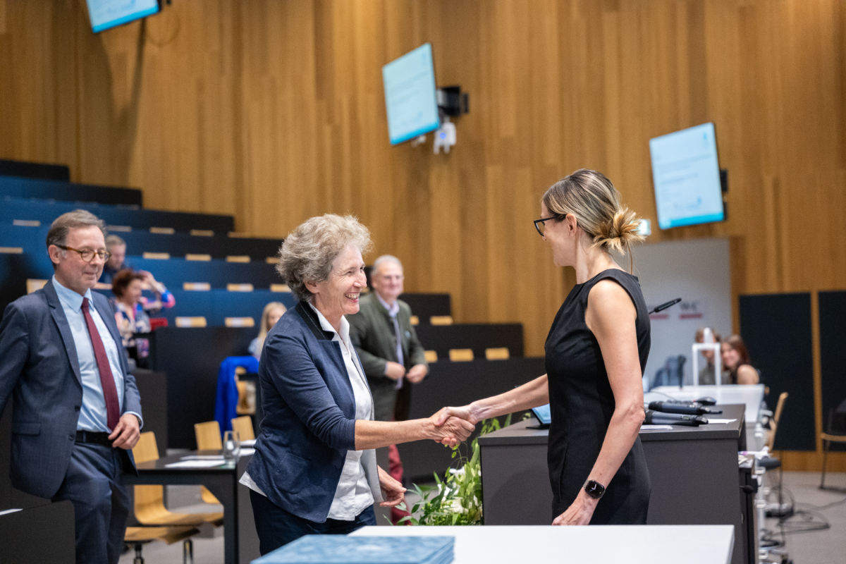 50 bis 60 Habilitationen werden an der Medizinischen Universität im Durchschnitt jedes Jahr verzeichnet. Viele Jahre führte in der Habilitationskommission Alexander Hüttenhofer den Vorsitz, der 12. Science Day wäre für ihn der letzte in dieser Funktion gewesen – krankheitsbedingt war Hüttenhofer verhindert. Sein Nachfolger Romuald Bellmann gratulierte den Ausgezeichneten. Deren Habilitationen wurden dann zunächst von Christine Bandtlow, Vizerektorin für Forschung und Internationales, vorgestellt, anschließend sprachen die sechs Habilitand:innen selbst über ihren akademischen Werdegang und ihre wissenschaftliche Arbeit, bevor ihnen die Urkunden überreicht wurden. Mit ihnen freuten sich Angehörige und Freund:innen.