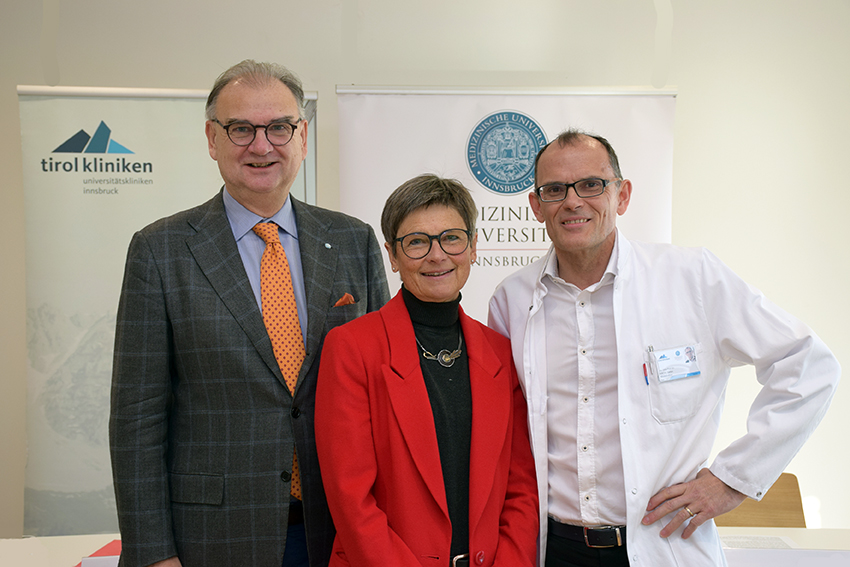 BU: v.li: W. Wolfgang Fleischhacker, Rektor der Medizinischen Universität Innsbruck; Alexandra Kofler, Ärztliche Direktorin Klinik Innsbruck; Stefan Kiechl, Direktor der Universitätsklinik für Neurologie. Foto: MUI/Bullock
