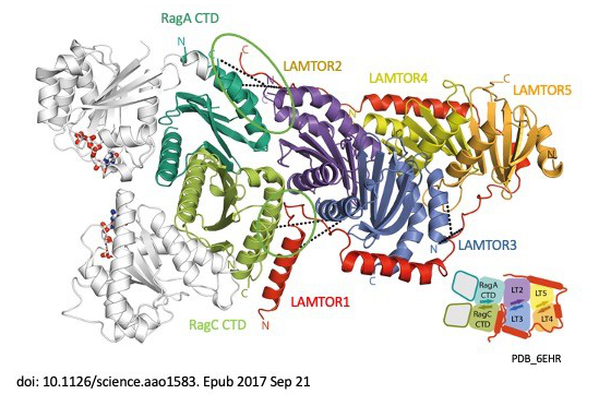 - Crystal structure of the human lysosomal mTORC1 scaffold complex and its impact on signaling. de Araujo MEG, Naschberger A, Fürnrohr BG, Stasyk T, Dunzendorfer-Matt T, Lechner S, Welti S, Kremser L, Shivalingaiah G, Offterdinger M, Lindner HH, Huber LA, Scheffzek K. Science. 2017 Oct 20;358(6361):377-381. doi: 10.1126/science.aao1583. Epub 2017 Sep 21. PMID: 28935770