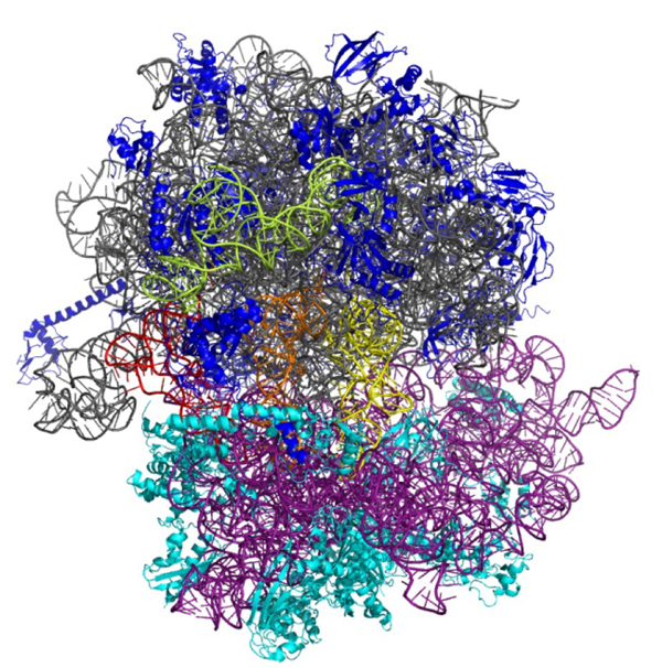 Fig. 3: The ribosome is an essential, multifunctional complex in every living cell. The regulation and mode of function of the ribosome represent one research focus of the Institute of Genomics and RNomics.