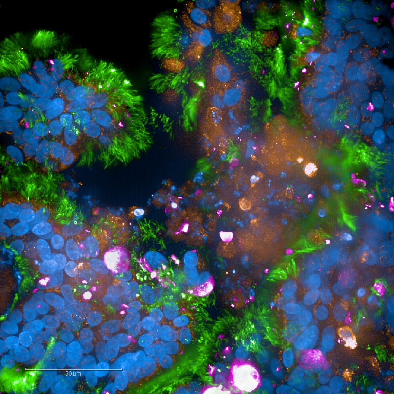 The respiratory barrier/immune model has been optimised in recent years as part of an ÖNB project. This 3D model and differentiated apical-out lung organoids are applied in further studies using pathogenic fungi (in cooperation with CL-F.) or SARS-CoV-2 (project leader: WP > COVID19 project).