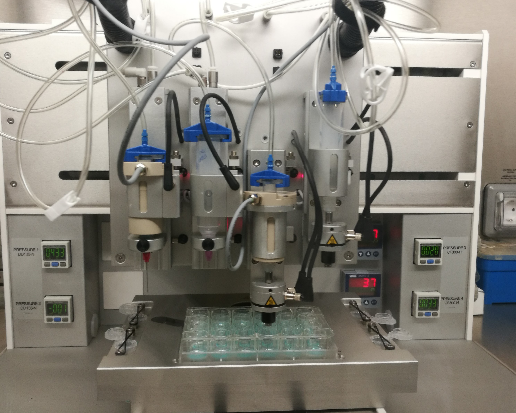 Die Geräte befinden sich in den Räumlichkeiten des 3D Biodrucklabors, Innrain 66, 4.OG bzw. Innrain 66a. 3.OG (Zutritt nur nach Voranmeldung – s. Kontakt), Raumnummer siehe unten bei Geräten