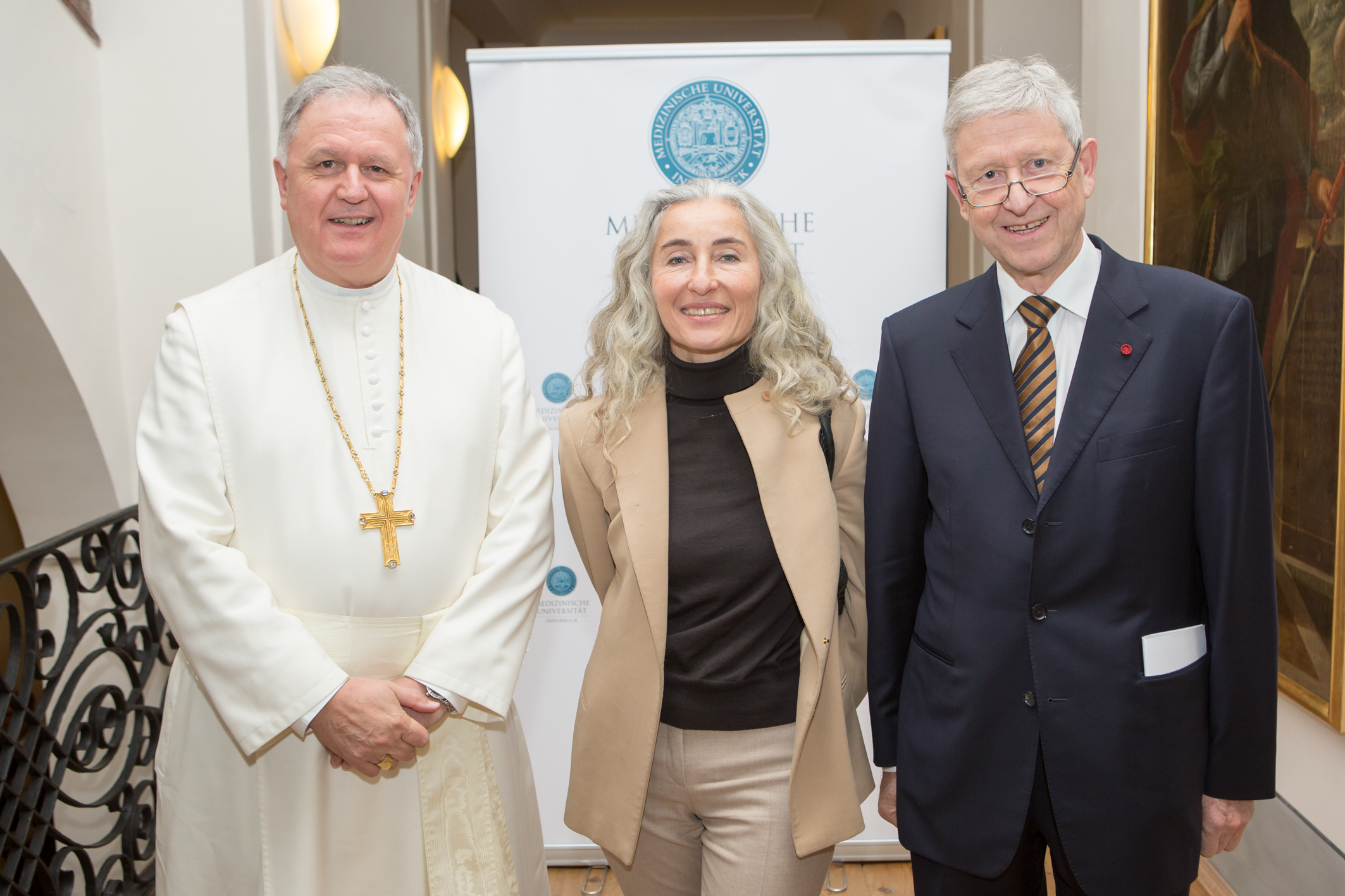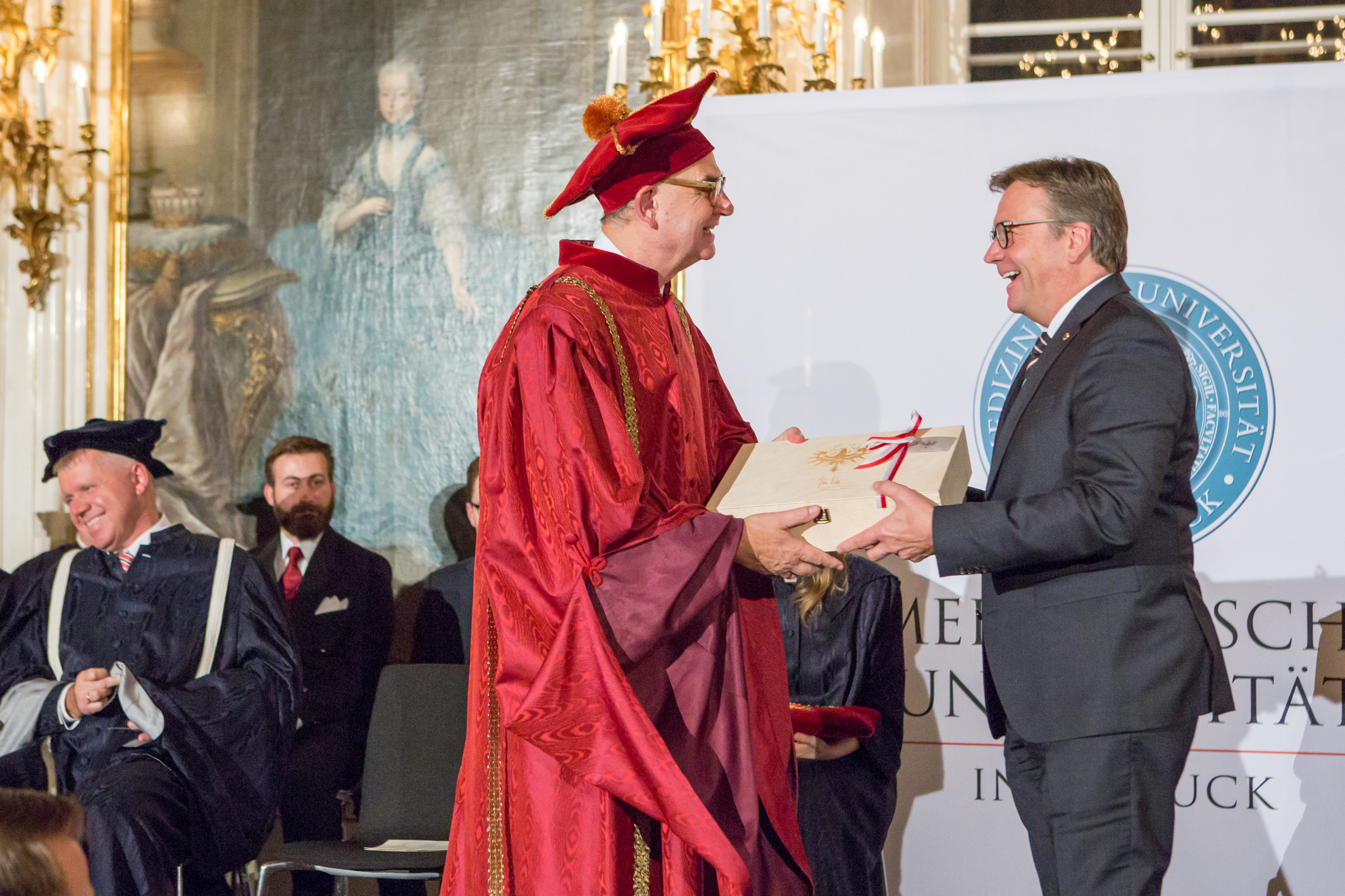Begrüßt wurden die Festgäste von Universitätsratsvorsitzendem Reinhard Putz. Vor der eigentlichen Zeremonie hatten der Geschäftsführer der tirol kliniken, Stefan Deflorian, die Bürgermeisterin der Stadt Innsbruck, Christine Oppitz-Plörer sowie der Landeshauptmann von Tirol, Günther Platter, in ihren Grußworten ihre Verbundenheit mit der Medizinischen Universität zum Ausdruck gebracht.
