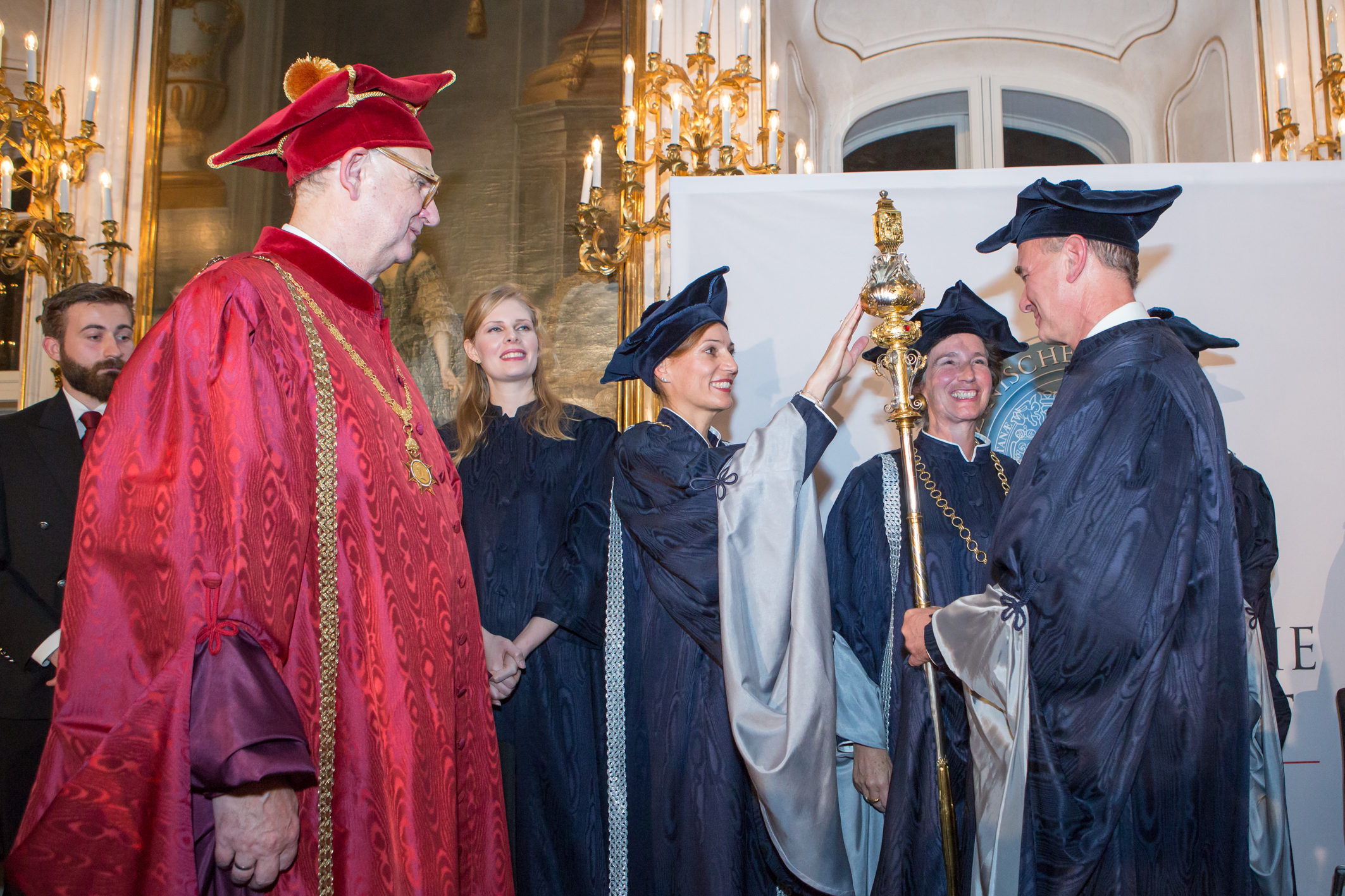 Der Riesensaal der Innsbrucker Hofburg war erstmals Schauplatz einer Inauguration. Dank der großzügigen Unterstützung des Landes Tirol fand die feierliche Amtseinführung des neuen Rektoratsteams an der Medizinischen Universität Innsbruck in diesem Ambiente statt. Die neuen Räumlichkeiten dürfen als erstes Anzeichen für zukünftige Veränderungen gewertet werden. „Metaphorisch könnten Sie diese Veränderung auch als Öffnung der Universität nach außen interpretieren“, erklärte Rektor Wolfgang Fleischhacker im Rahmen seiner Festrede.
