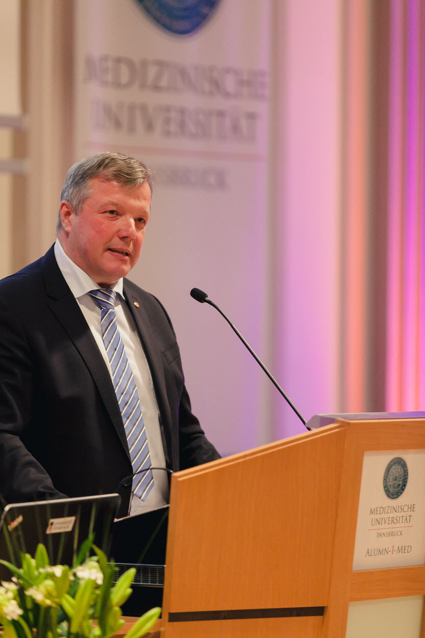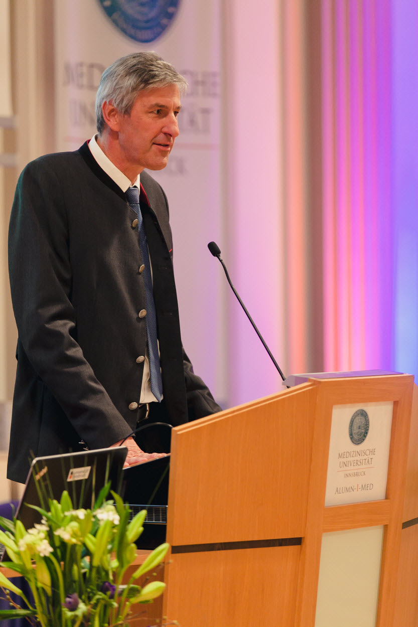 Ihre Verbundenheit mit der Medizinischen Universität Innsbruck drückten Landesrat Bernhard Tilg, Stadtrat Franz-Xaver Gruber und die Ärztliche Direktorin des Landeskrankenhauses – Univ.-Kliniken Innsbruck, Alexandra Kofler, in Grußworten aus.