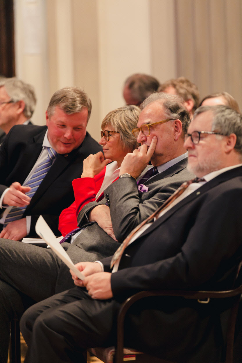 Im Rahmen des Neujahrsempfangs stellten sich Ute Marie Ganswindt (Strahlentherapie-Radioonkologie), Ralf Geiger (Pädiatrie II) und Thomas Müller (Pädiatrie I) als neu berufene ProfessorInnen vor. Traditionell wurden auch wieder die ProfessorInnen, die im vergangenen Jahr pensioniert wurden, verabschiedet. Peter Lukas (Strahlentherapie-Radioonkologie), Alois Saria (Experimentelle Psychiatrie), Robert Zangerle (Dermatologie, Venerologie und Allergologie) nutzten die Gelegenheit.