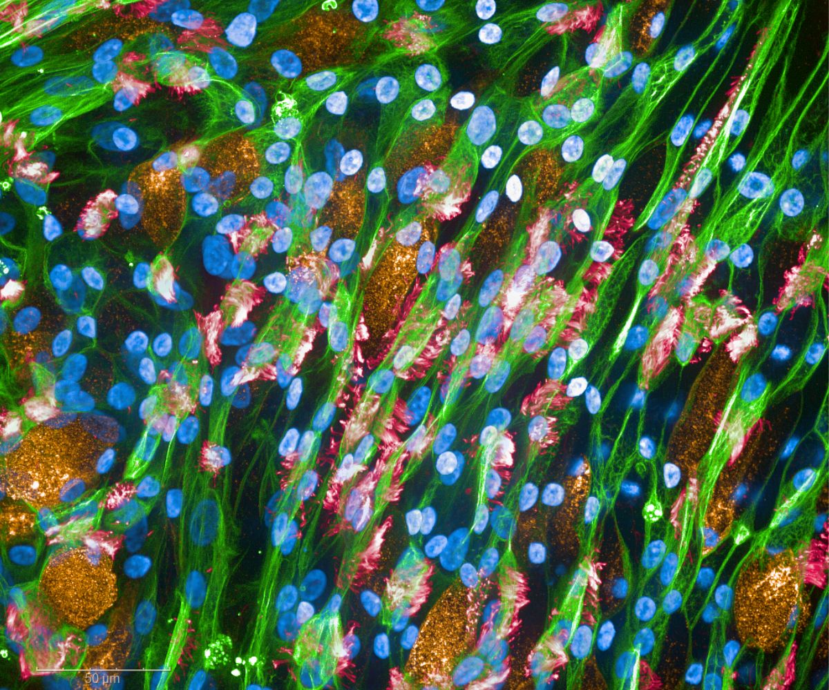 Lungenepithelzellen infiziert mit SARS-Cov2 (Bild: Doris Wilflingseder)