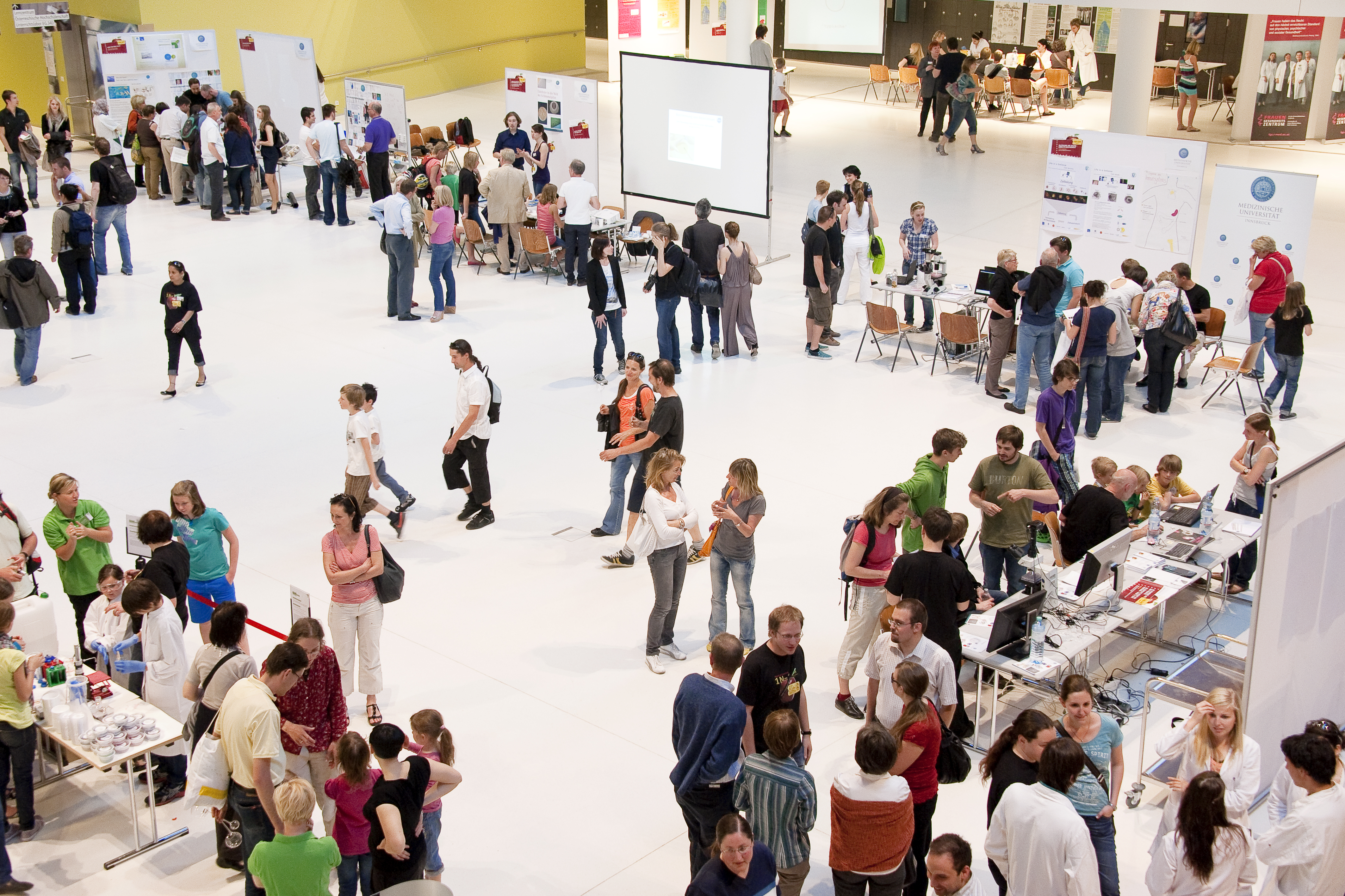 Das gesamte Programm war so gestaltet, dass es für die ganze Familie etwas zu bieten hatte. Von Blitzen im Labor, leuchtenden Quarzen, essbaren Genen und heilenden Laserstrahlen bis hin zu Raketenautos und einer begehbaren Arterie gab es auch viel Spektakuläres zu sehen. Die BesucherInnen strömten bei freiem Eintritt den ganzen Abend über durch die Standorte in Innsbruck, Innsbruck-Land, Kufstein und Lienz. In der Landeshauptstadt sorgte ein kostenloser Busshuttledienst für den raschen Transport zwischen den einzelnen Standorten.