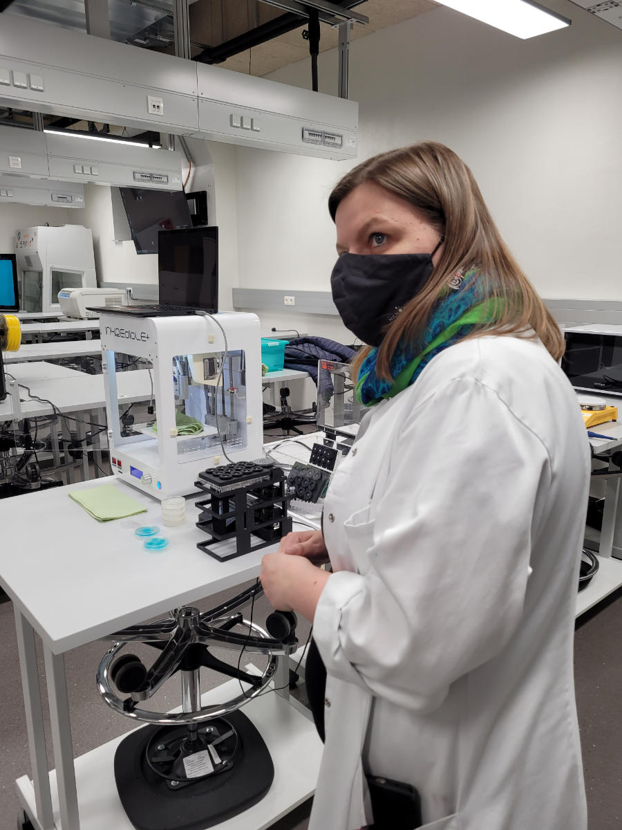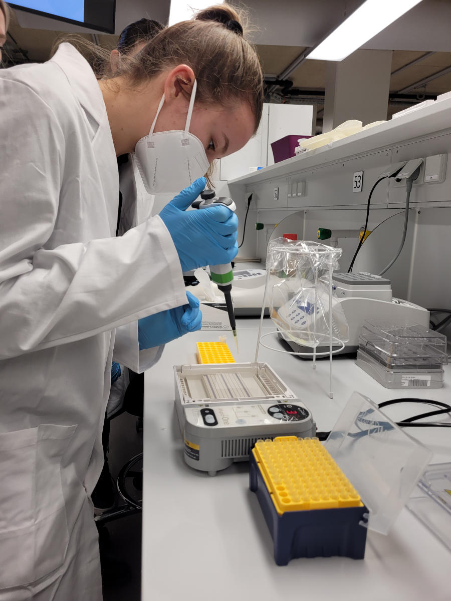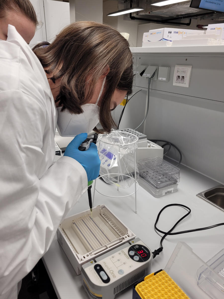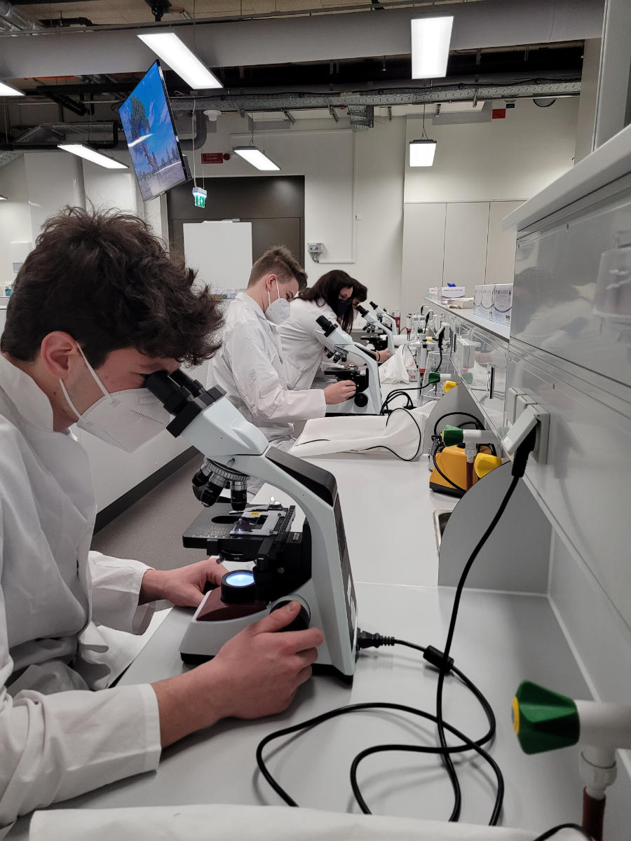 Open Labs Days wären keine Open Labs Days, wenn die SchülerInnen nicht selbst im Labor Hand anlegen dürften. Und so schlüpften sie für verschiedene Praxis- und Experimentiereinheiten selber in den Labormantel. An insgesamt acht Stationen, die von vielen motivierten HelferInnen der Med Uni betreut wurden, durften sie ihrer Neugierde freien Lauf lassen und den Wissensdurst stillen. Dabei ging es um den Aufbau und die Funktion von Zellen, die Manipulation von DNA und richtige Handhygiene und Desinfektion. An zwei Stationen durften sich die BesucherInnen am Einfärben von Schnitten und Mikroskopieren ausprobieren. Michael Außerlechner und Judith Hagenbuchner stellten mit viel Witz und zahlreichen Küchenanalogien ihr 3D Bioprinting Labor vor. In einem Labor widmeten sich die SchülerInnen der Genomsequenzierung und, last but not least, wurden noch analytische Methoden zur Auftrennung von Molekülen gezeigt.