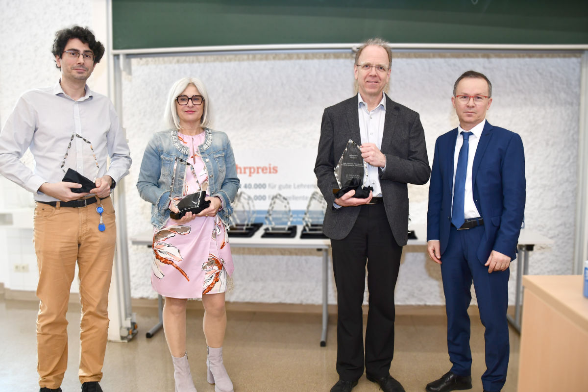 Wolfgang Prodinger (rechts) hat die Lehrpreise übergeben: v.l. Hesso Farhan, Cornelia Lass-Flörl, Johannes Zschocke