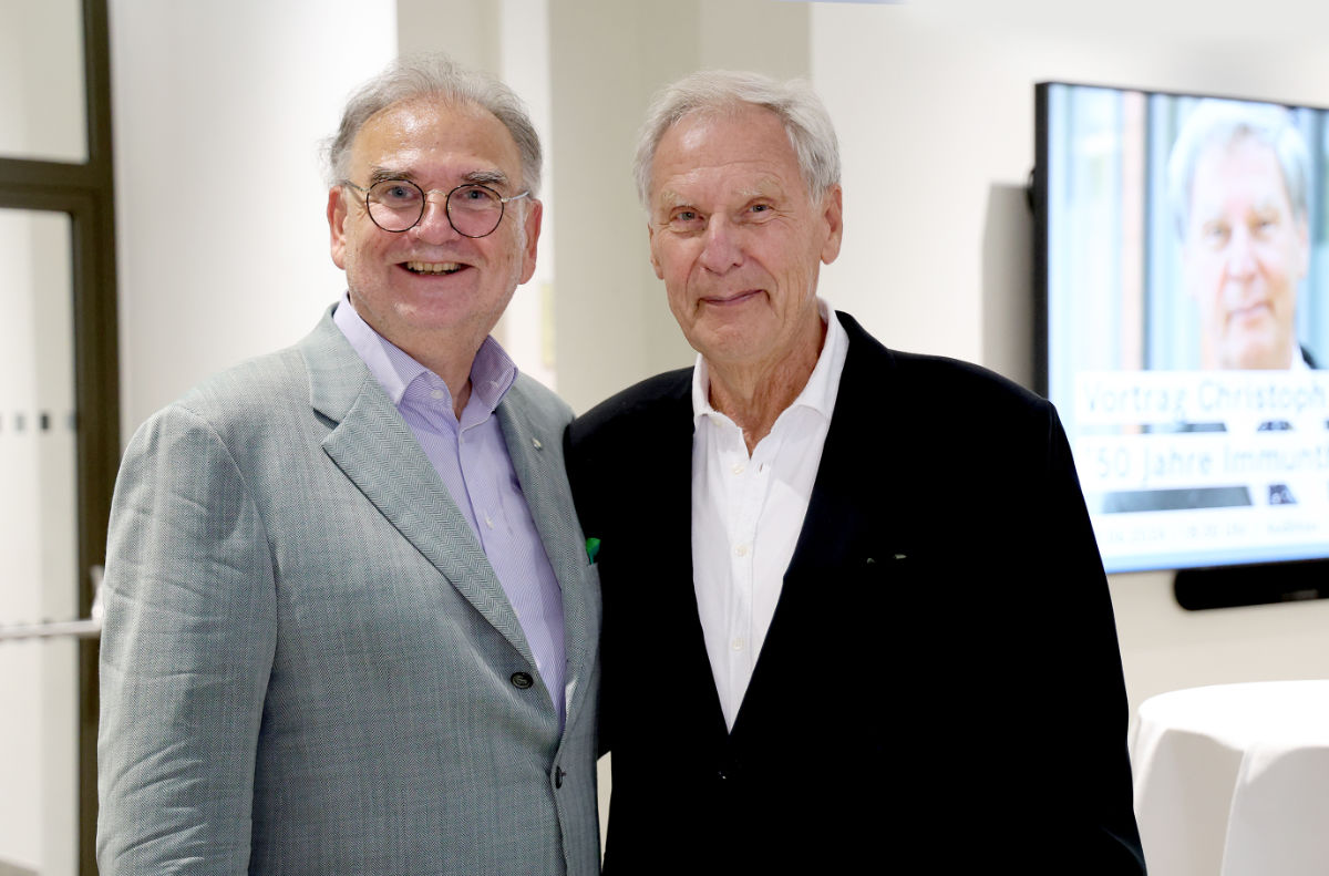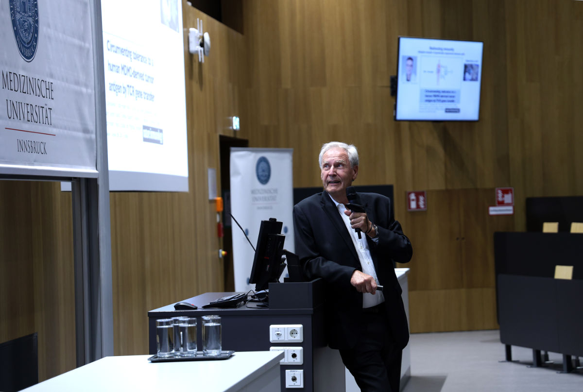 Vergangene Woche kamen zahlreiche Wissenschafterinnen und Wissenschafter der Medizin Uni Innsbruck und weitere Interessierte in den Genuss besonderen Wissens und persönlicher Erfahrungen: Der Hämatologe und Onkologe Christoph Huber, der auch Ehrendoktor und Ehrensenator der Medizin Uni Innsbruck ist, blickte auf persönliche Erfahrungen „50 Jahre Immuntherapie“ zurück.
