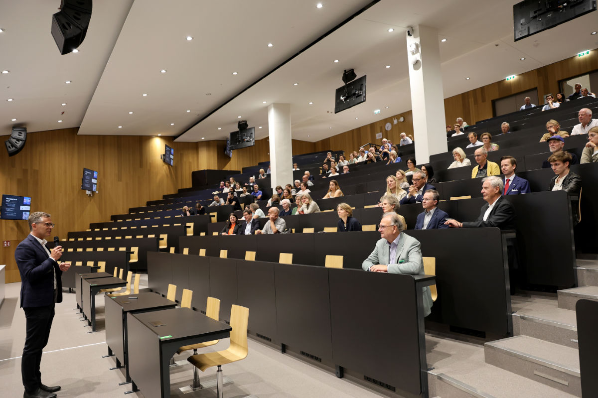 Auch wenn er als einer der zentralen Vorreiter und Wegbereiter der Immuntherapie gilt, gab sich Christoph Huber bei seinem Vortrag bescheiden und betonte die Teamleistung all seiner wissenschaftlichen Beiträge: „Alles, was ich erreicht habe, entstand in großen Teams von jungen Leuten, ganz nach dem bottom-up Prinzip“. Mit den Abwehrzellen des Immunsystems beschäftigte sich Huber schon während seines Studiums in Innsbruck. Auf dem Weg zur Immuntherapie hätte er vor allem auch „das Glück gehabt, mit führenden internationalen Immunologen zusammenarbeiten zu dürfen“. Doch Huber blieb nicht nur Forscher und Mediziner, sondern machte sich auch als Unternehmensgründer verdient. „Eine Firma gründet man, wenn man Wissen aus der Grundlagenforschung zur Rettung von Menschen umsetzen will“, postulierte der Gründer mehrerer universitärer Startups den Sinn translationaler Medizin und sprach sich gleichzeitig vehement für eine Stärkung der Academia aus.