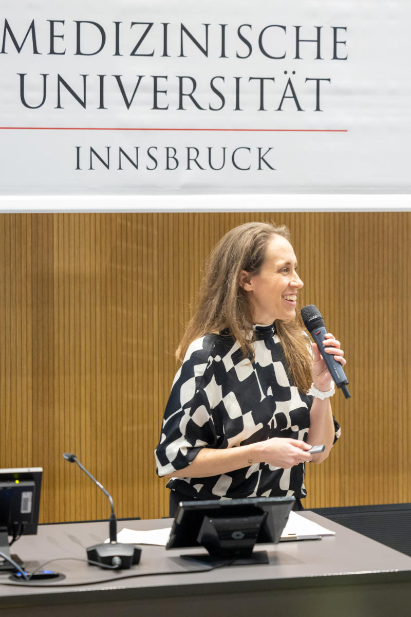 Der Science Day ist seit 2014 das Aufnahme- und Begrüßungsritual für die neuen PrivatdozentInnen der Med Uni Innsbruck. 50 bis 60 Habilitationen werden hier im Durchschnitt jedes Jahr verzeichnet. Alexander Hüttenhofer, der Vorsitzende der Habilitationskommission, betonte, dass eine Habilitation kein 100-Meter-Sprint, sondern ein Marathon sei, mit entsprechenden Durststrecken, aber auch mit Momenten großer Freude. Die anstehende Karriere an der Universität sei darüber hinaus der Ultramarathon, in denen die Habilitierten nun mehrere Jahrzehnte wissenschaftlich arbeiten würden. Dabei könnten sie wiederum ihre Erkenntnisse an andere DoktorandInnen und Masterstudierende weitergeben – und das in einer großen Bandbreite an Forschungsgebieten. „Wissenschaft ist kein Job, sie ist ein Privileg“, gab Hüttenhofer den HabilitandInnen abschließend mit auf den Weg.
