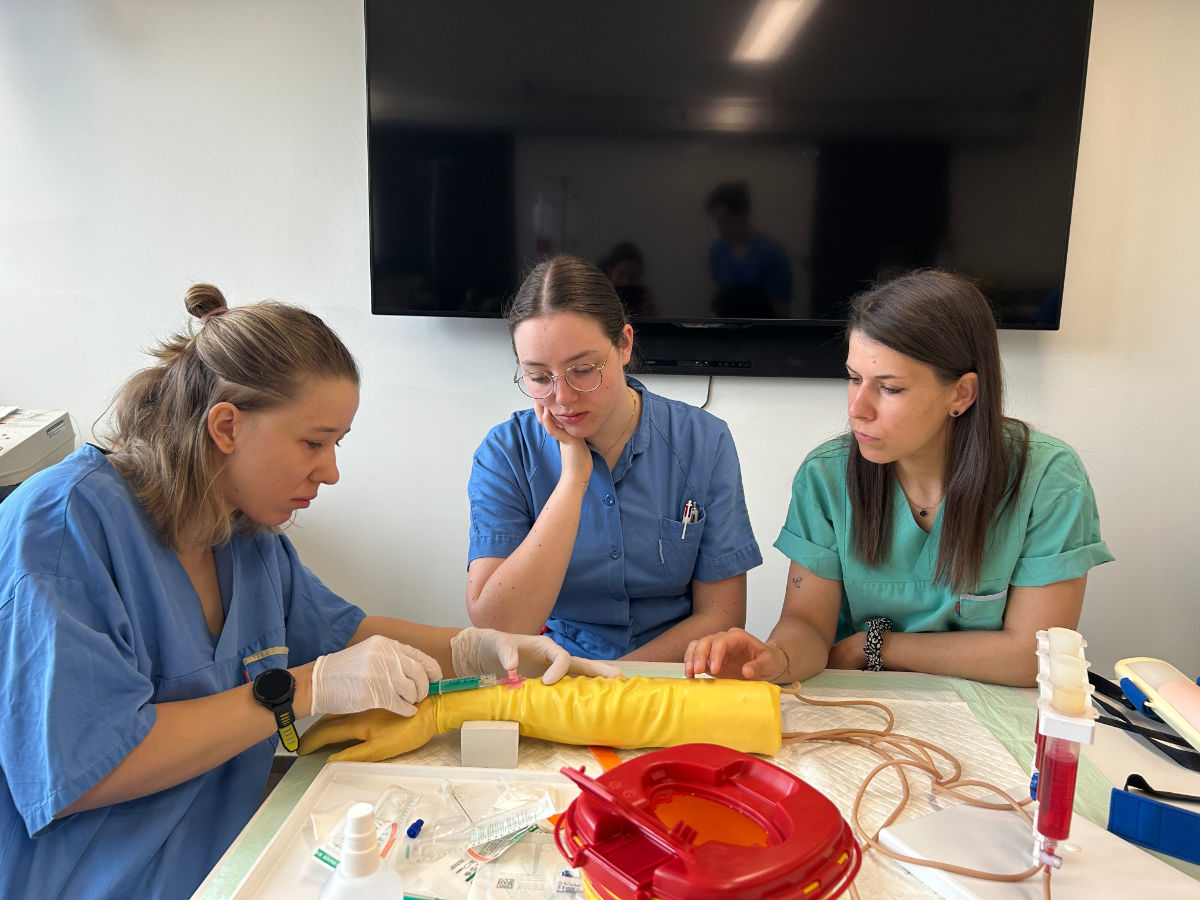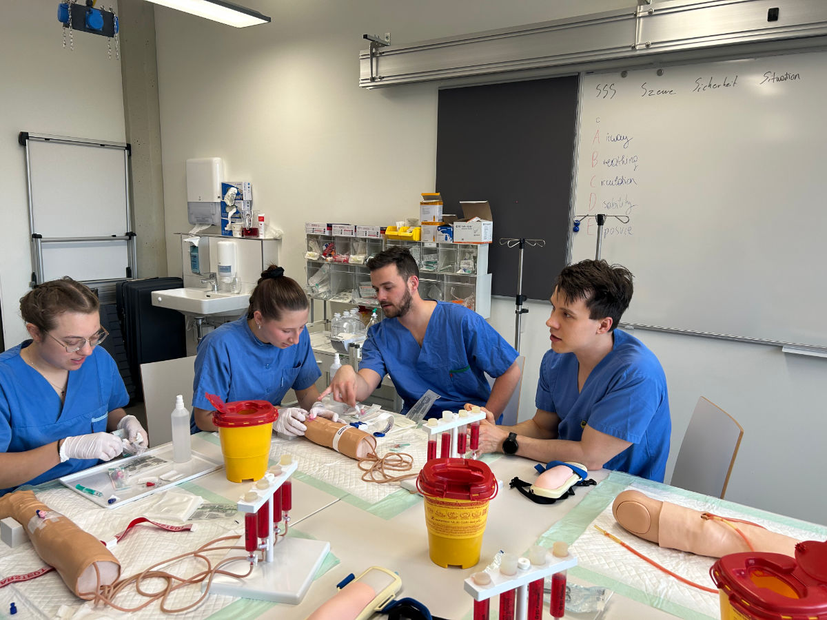 Hanna Brugger, Medizinstudentin aus Dornbirn im 10. Semester, möchte Kinderärztin werden und hat die Gelegenheit, ihre Fähigkeiten zu vertiefen, sofort ergriffen und sich gleich angemeldet. Kurz vor der Übung zur Blutabnahme erzählt sie: „Ich selbst kann nicht verstehen warum, aber es gibt schon noch teilweise Vorurteile zwischen Medizin und Pflege. Bei diesem Kurs erlebt man jedenfalls ganz deutlich, wie wichtig die Zusammenarbeit ist.“ Ihr Studienkollege Alex Klapper aus Rankweil ergänzt: „Wir beide sind auch im Team von Notfall4you und der Skills Night, da hat uns das interdisziplinäre pädiatrische Training sofort angesprochen.“