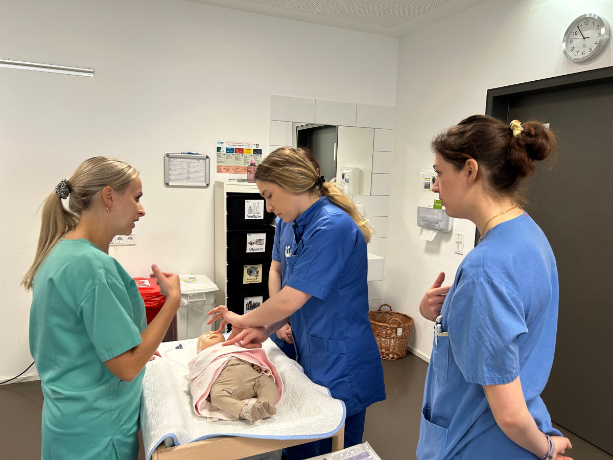 Einem zappelnden Kleinkind Blut abnehmen, einem Baby eine Magensonde legen oder einen Säugling reanimieren: Beim Pilotprojekt „Interdisziplinäres pädiatrisches Training“ übten Studierende der Medizin und der Gesundheits- und Krankenpflege gemeinsam Skills und spielten pädiatrische Fälle durch. Die Medizinische Universität Innsbruck und die fh gesundheit haben das Projekt initiiert, um die Interaktion und Kommunikation zwischen den zukünftigen ÄrztInnen und KrankenpflegerInnen zu verbessern.