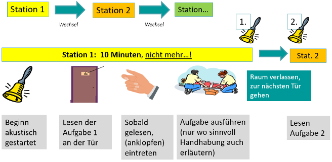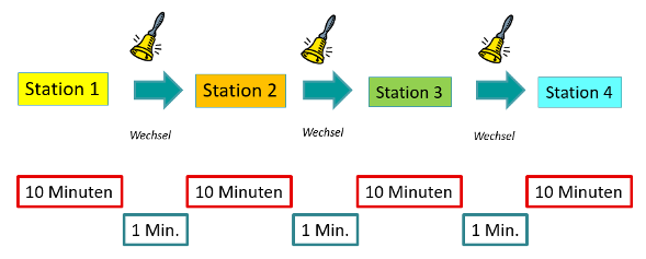 1 Parcours zu 4 Stationen a 10 Min = insgesamt 1 gute Stunde