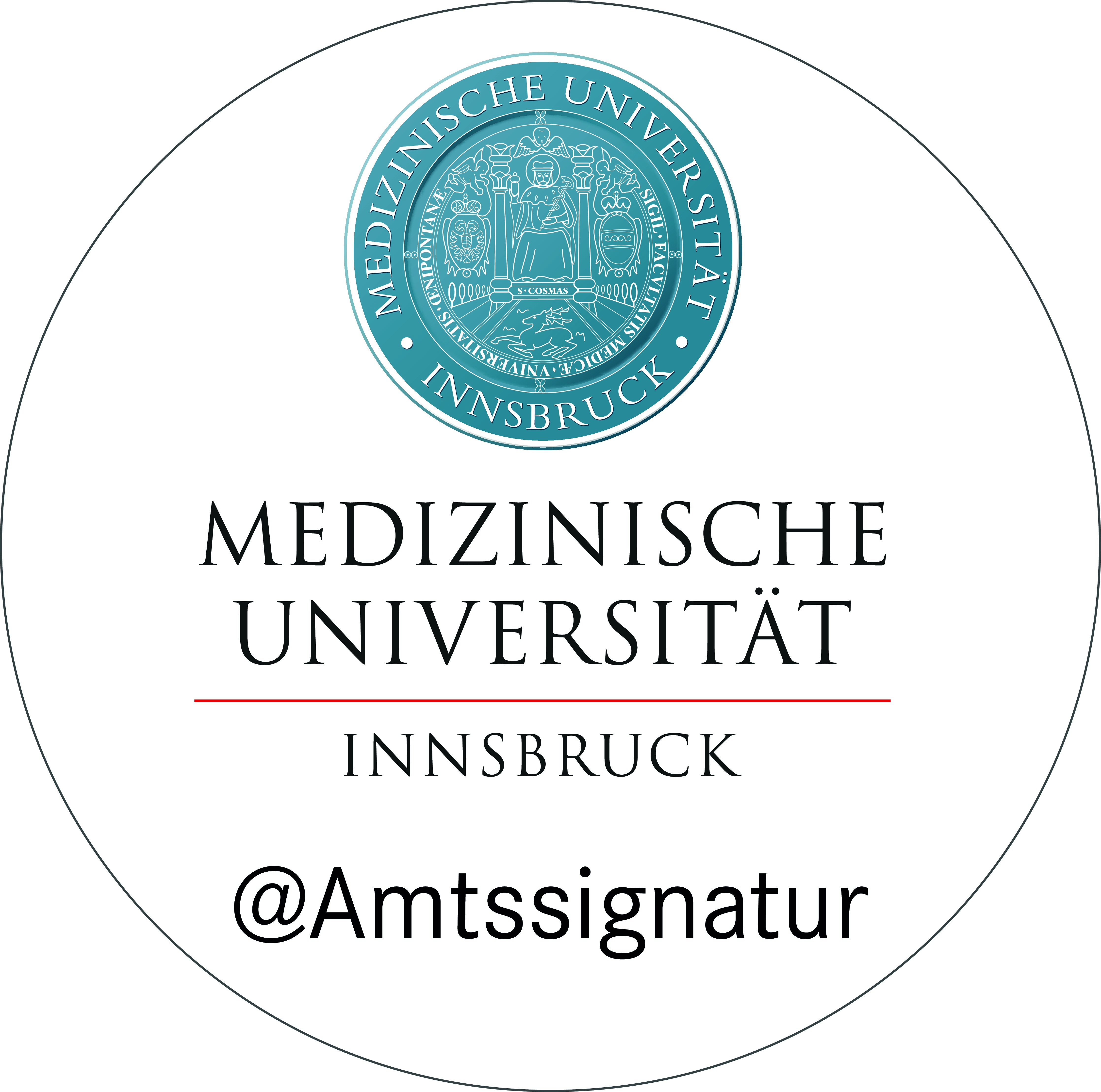 Die Amtssignatur ist eine rechtsgültige elektronische Unterschrift, die auf digitalen Dokumenten der Medizinischen Universität Innsbruck angebracht wird. Sie stellt sicher, dass es sich um ein authentisches Dokument handelt, das von der Universität ausgestellt wurde.